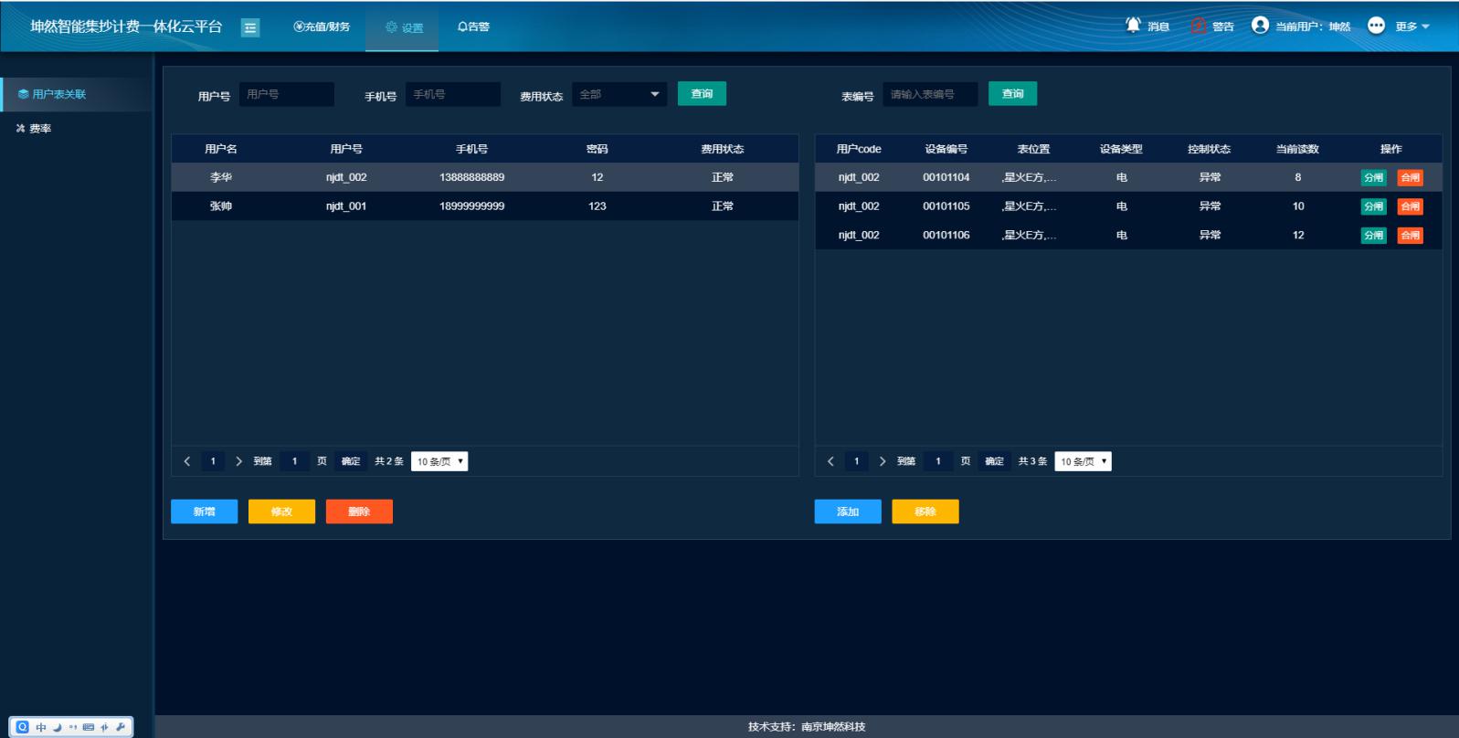 戶表設(shè)置:一戶多表,統(tǒng)一扣費(fèi),方便系統(tǒng)用戶繳費(fèi)充值,可對(duì)任意一塊表具進(jìn)行分合閘操作。