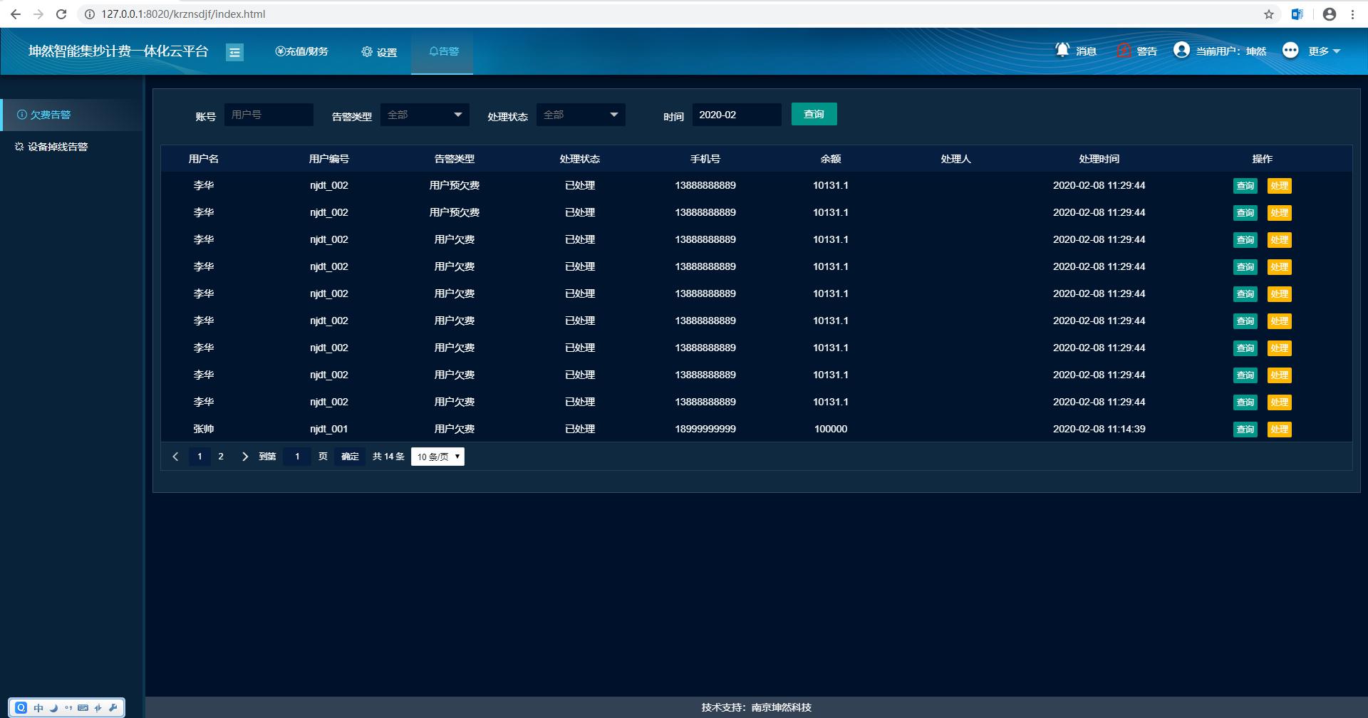 告警查看:系統(tǒng)管理員可查看系統(tǒng)所有用戶欠費(fèi)告警信息。